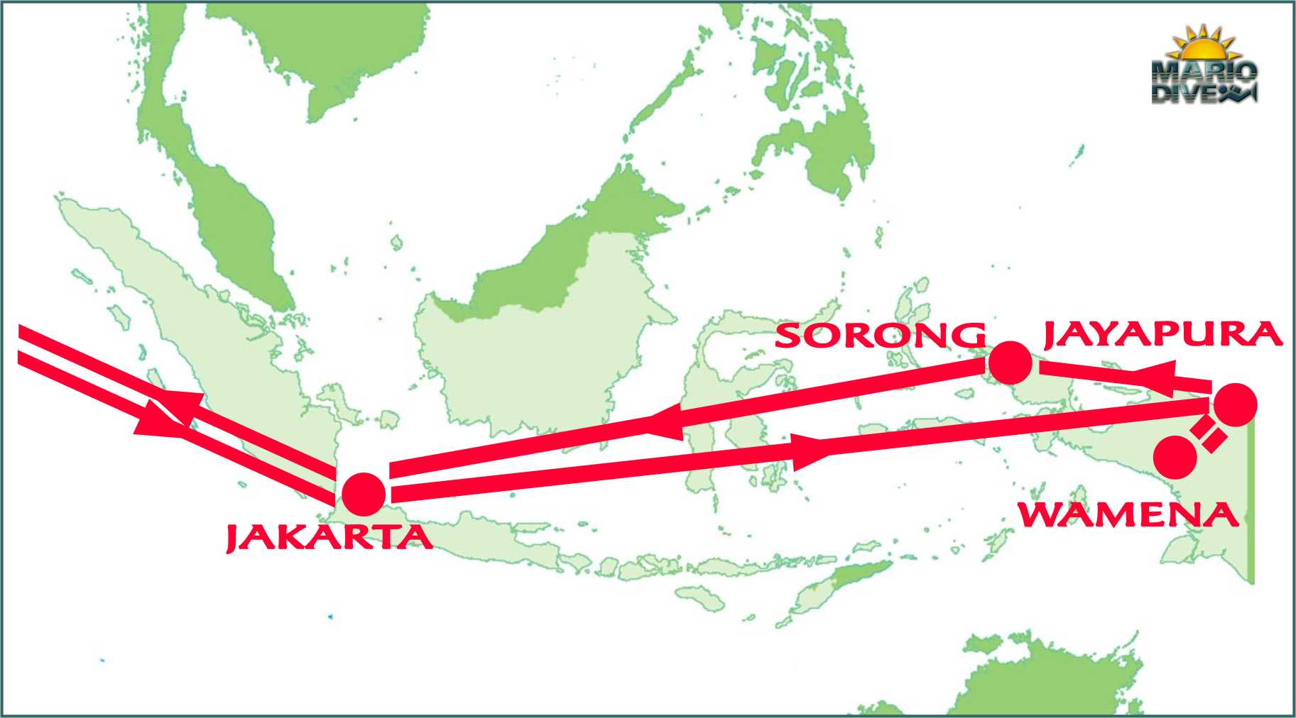 Oprócz 4 odcinków lotu Warszawa – Jakarta – Warszawa ( z jednym międzylądowaniem w każdą stronę ), konieczne będzie jeszcze 5 przelotów na terenie Indonezji – odpowiednio po trasie: Jakarta – Jayapura – Wamena ( awionetka ) – Jayapura ( awionetka ) – Sorong – Jakarta.