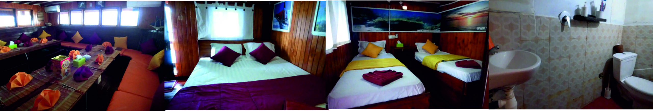 Mieszkamy na komfortowej łodzi aby trasę wydłużyć do maksimum i uciec od obleganych miejsc nurkowych. Nurkujemy nawet 22 !!! razy pomiędzy dzikimi wyspami , z dala od stałego lądu ( oczywiście jeśli pogoda pozwoli ) . Znikamy z cywilizacji na cały czas safari. To wszystko w nurkowym “raju” – miejscu ze szczytów nurkowych list przebojów, o niezliczonym bogactwie raf i olbrzymich stadach ryb. W miejscu, które cywilizacja dotarła tylko “na brzegach”. Zanurzymy się wielokrotnie w wodach perły Koralowego Trójkąta, z lokalnymi doświadczonymi przewodnikami nurkowymi. Łodź jest duża, z kabinami z łazienką … inna niż poprzednio.